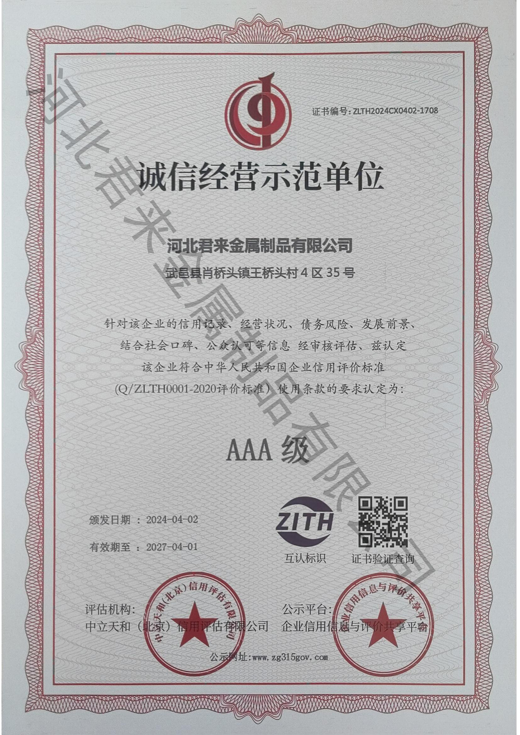 您好,歡迎訪問河北君來金屬制品有限公司!