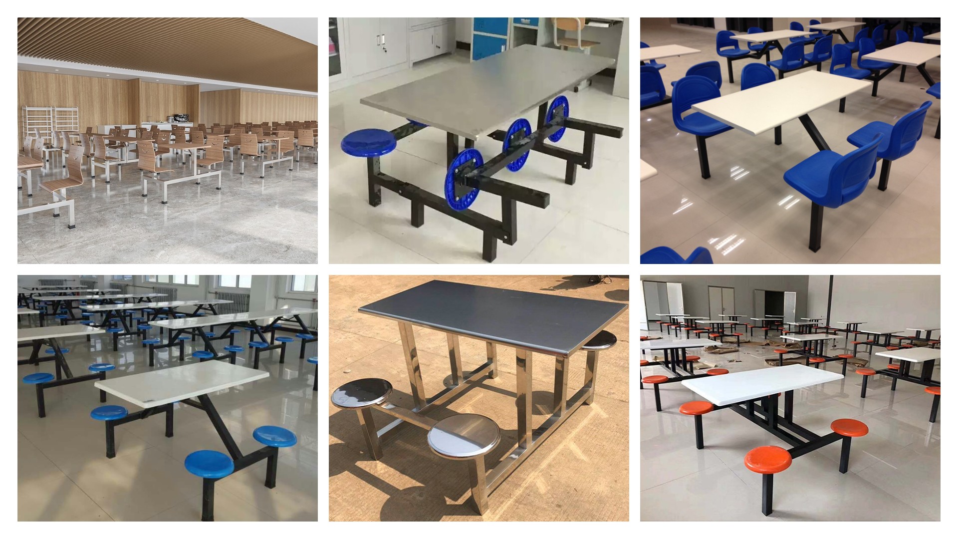 食堂餐桌用材比較廣泛,多以桌面與座椅相連接的款式為主。高度以720mm-760mm為標(biāo)準(zhǔn),餐桌椅是人類日常生活和社會(huì)活動(dòng)中使用的具有坐臥、憑倚、餐食等功能的器具。通常由若干個(gè)零、部件按一定接合方式裝配而成。給大家用餐時(shí)使用的桌椅,鋼木結(jié)構(gòu)居多,結(jié)構(gòu)簡(jiǎn)單,顏色簡(jiǎn)潔。